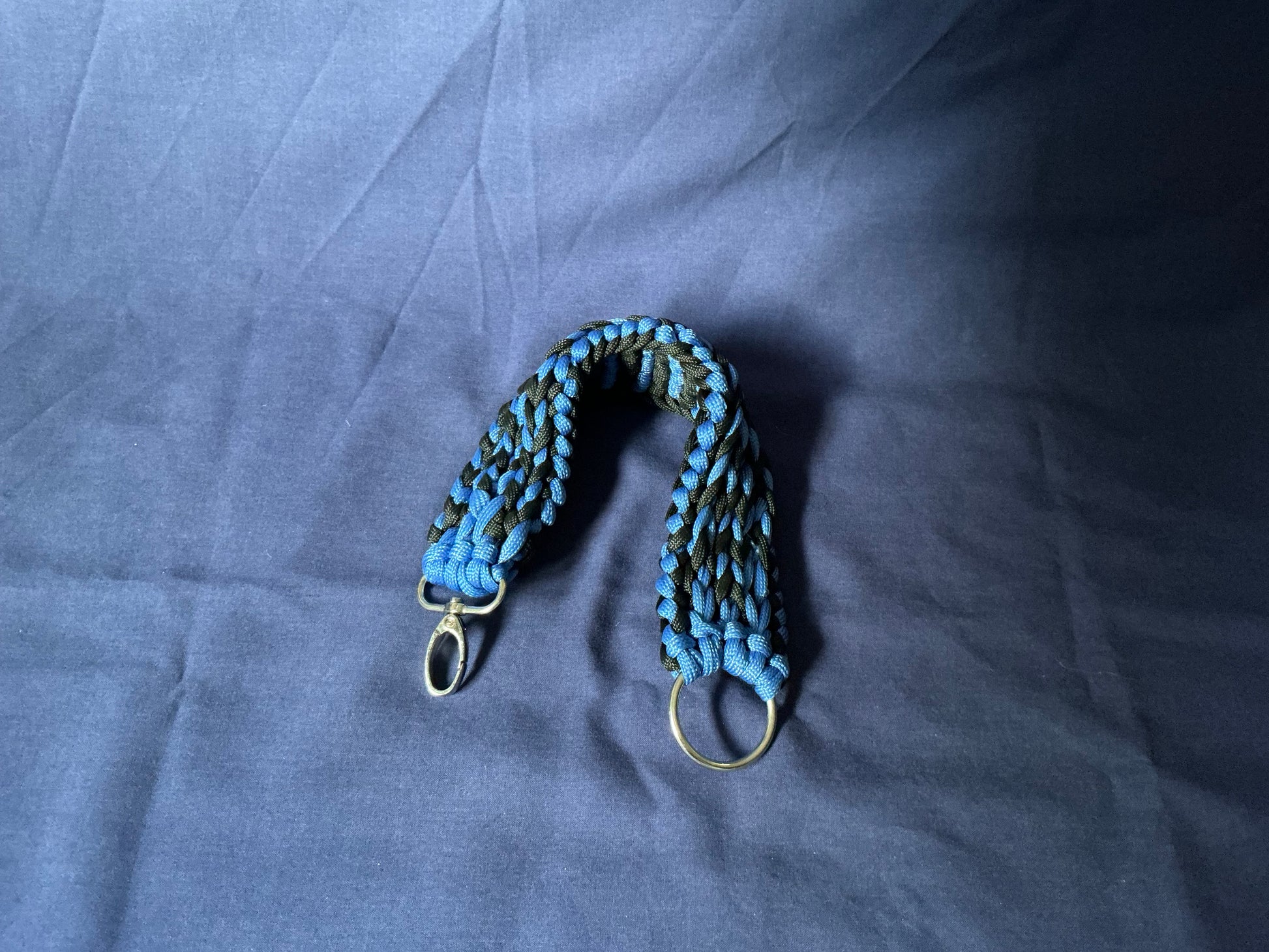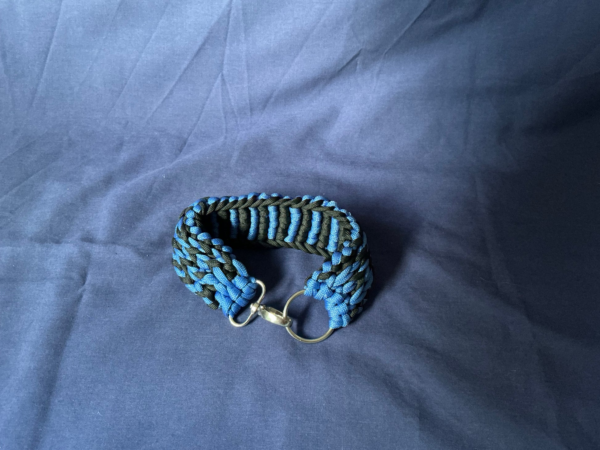 Paracord is celebrated for its resilience and symbolic meaning of protection, grounding, and stability. The deep black paired with vibrant blue creates a sleek, modern look that stands out while retaining a sense of simplicity and style.