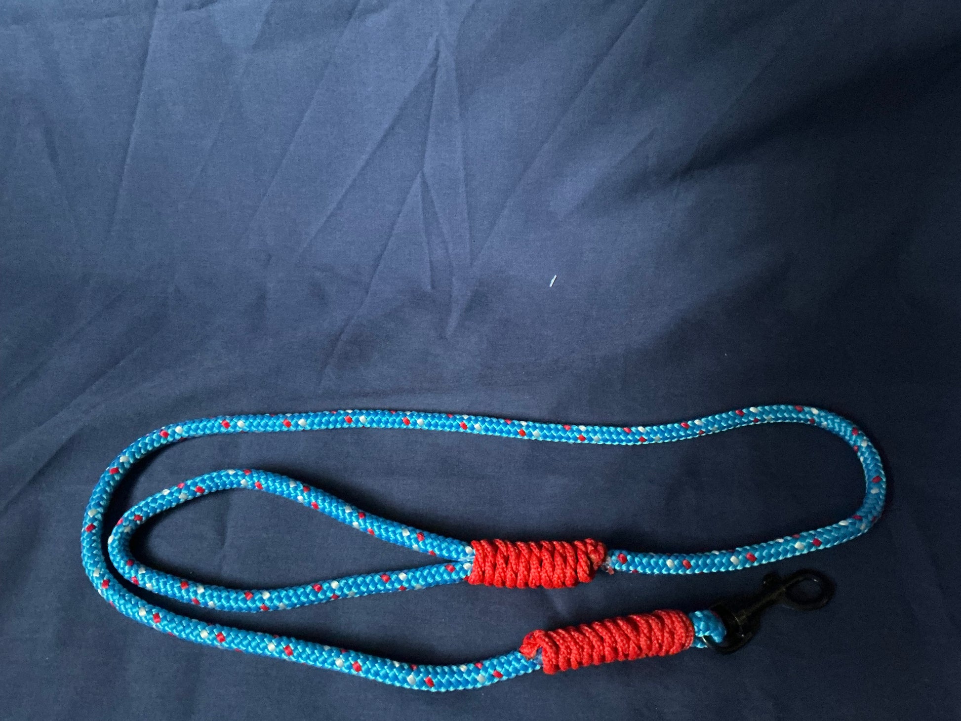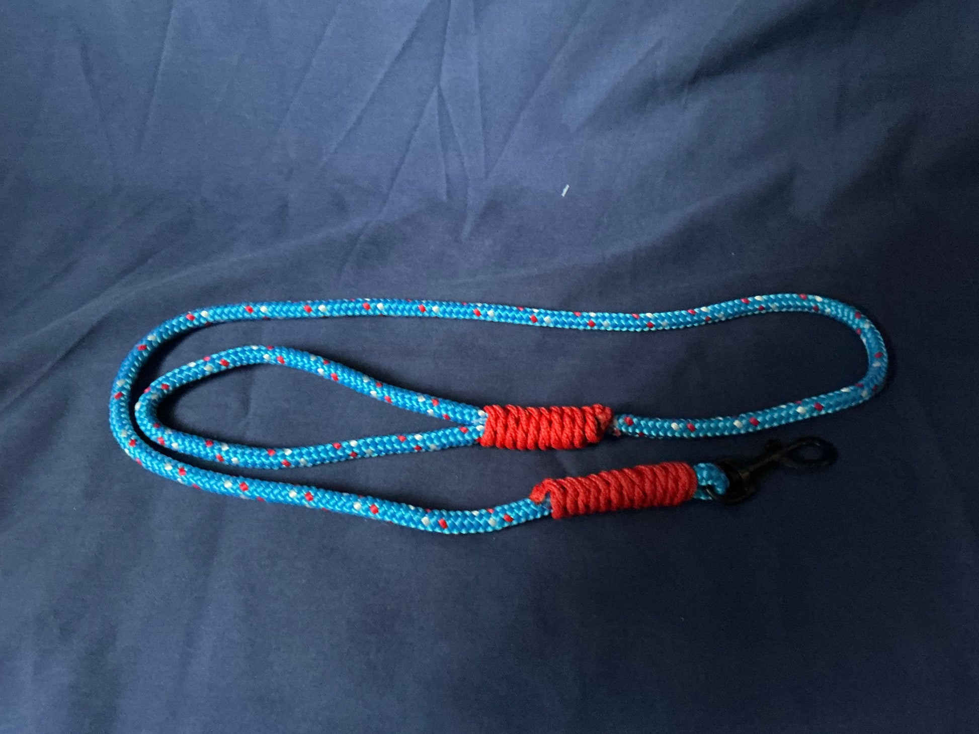 Blue & Red 4ft Rope Dog Leash with Reinforced Handle.