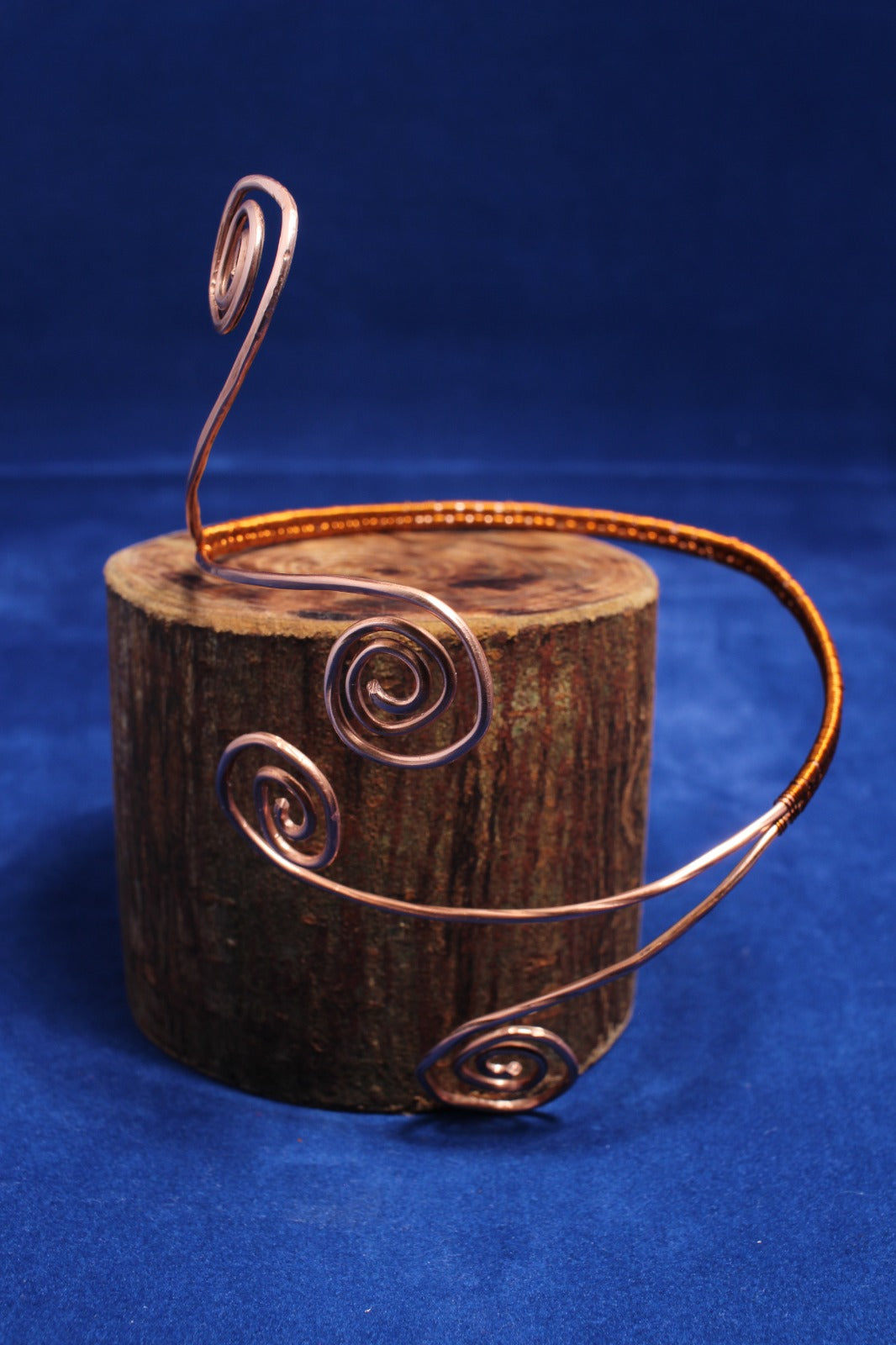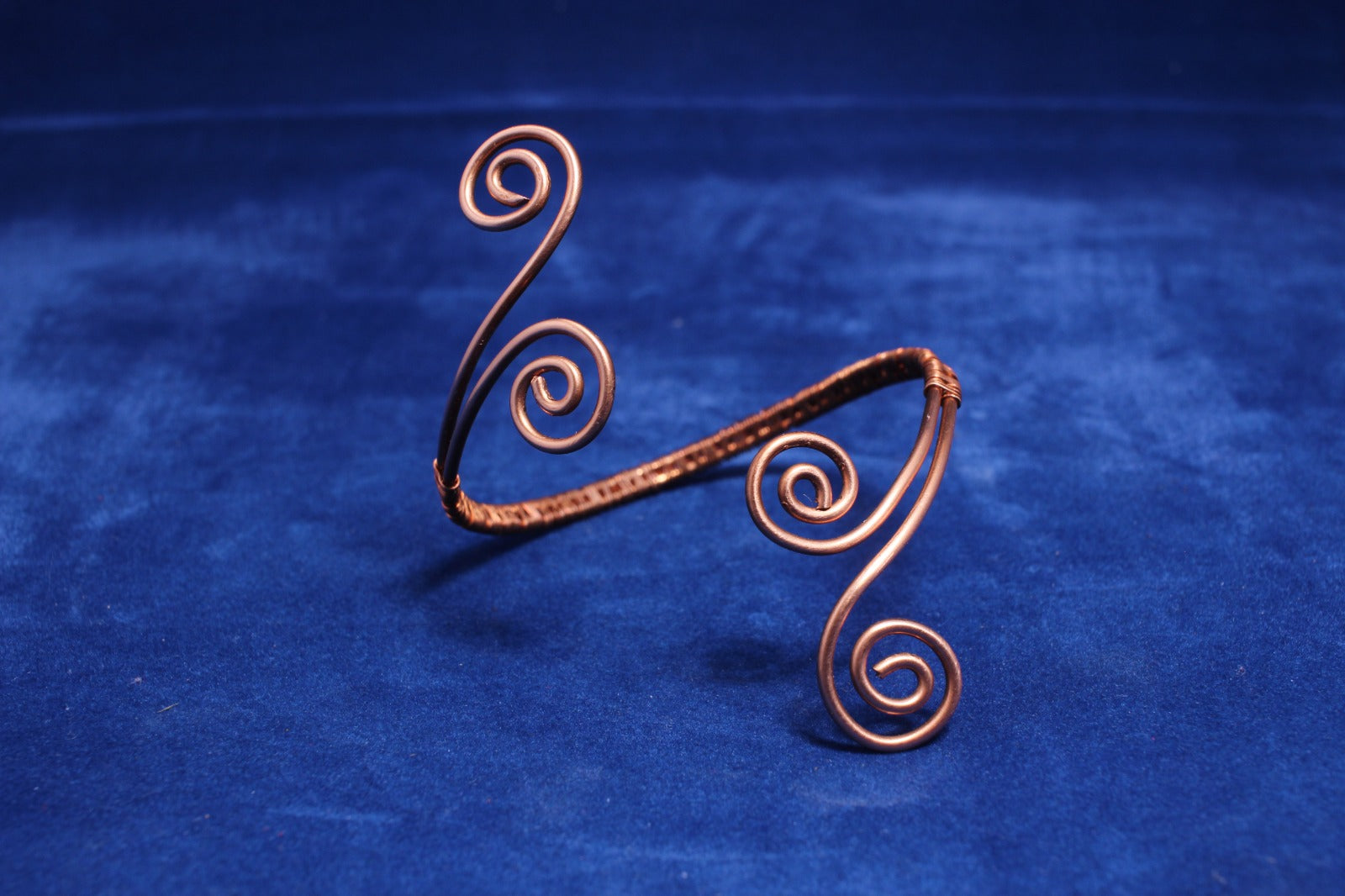 Copper Double Swirl Wire Wrapped Arm Bangle