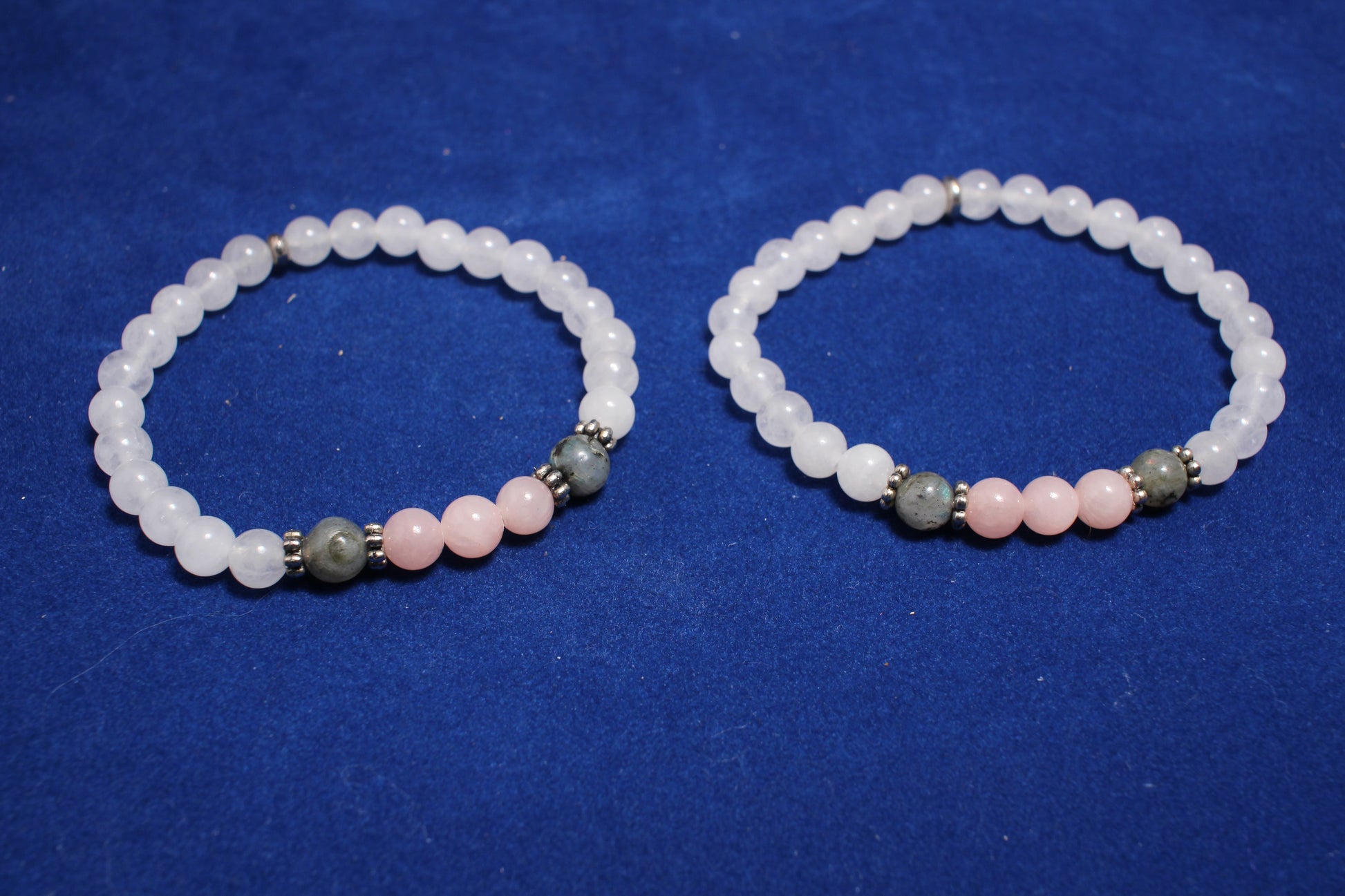 - 6mm milky quartz, rose quartz and labradorite gemstones